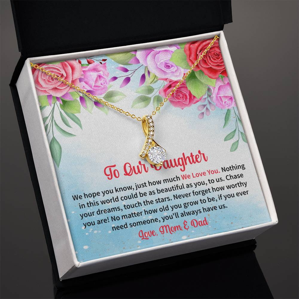 Imagine her reaction when she opens this stunning gift! The Alluring Beauty necklace features a petite ribbon-shaped pendant that is sure to dazzle your special someone. Whether it's a birthday or anniversary, make sure to get her a gift she will love for years to come.